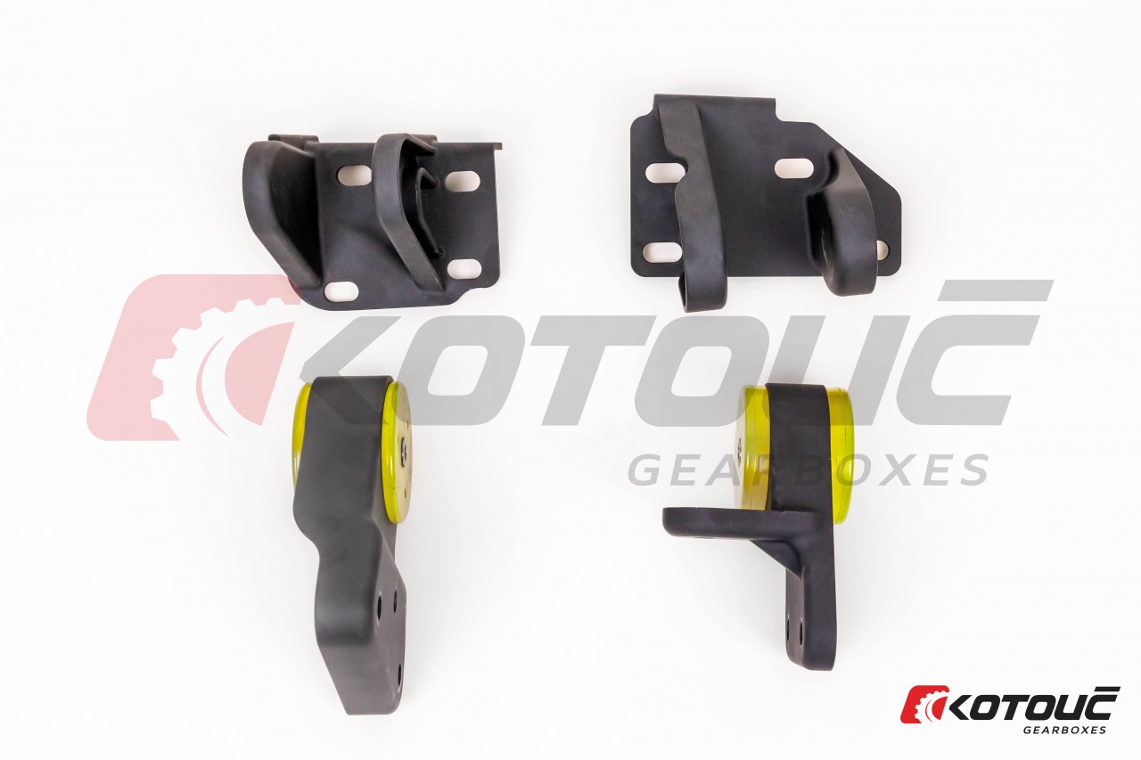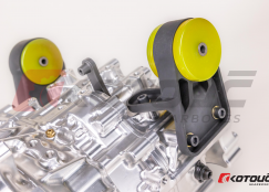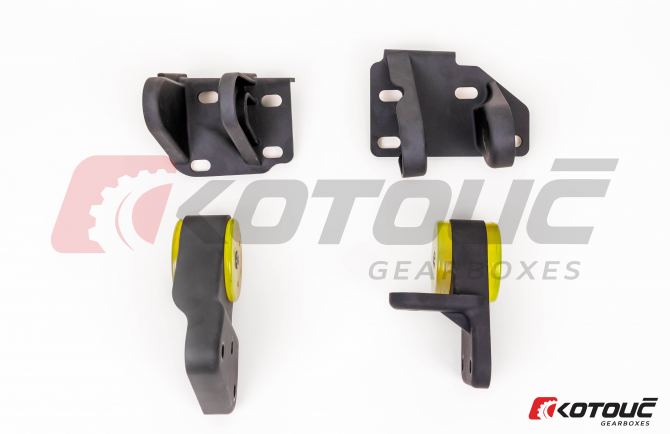 Die Halterungen sind für die Verwendung mit den originalen Silentblöcken ausgelegt. Alternativ können auch alle Aftermarket-Silentblöcke verwendet werden, die für den GTI-R vorgesehen sind. Die auf den Bildern gezeigten Silentblöcke dienen nur zur Veranschaulichung und sind nicht im Lieferumfang enthalten.